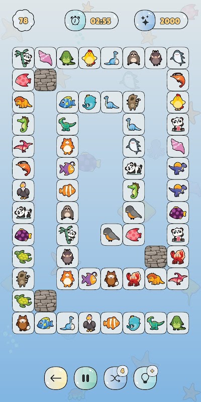 Finden Sie alle passenden Tiere, verbinden Sie in maximal 3 geraden Linien, um sie zu löschen.