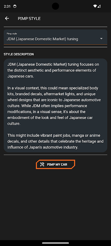 Laden Sie Pimp My Race Car AI jetzt herunter und begeben Sie sich auf eine spannende Reise der Automobilphantasie. Egal, ob Sie den ultimativen Rennwagen für den Wettbewerb entwerfen oder einfach nur der Freude an der Erstellung atemberaubender Bilder frönen, unsere App ist Ihre Eintrittskarte in die Welt der grenzenlosen Möglichkeiten.