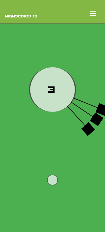 Tippen Sie, um Kegel in einen rotierenden Kreis zu schießen. Treffen Sie jedoch nicht die anderen Kegel!