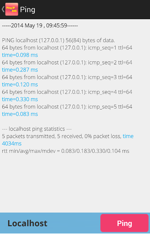 Ping test is application will helpful for you when you need check network in your phone.