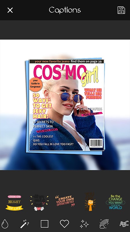 - Mehr als 30 Collagenbilder. Der Hintergrund wird auch automatisch unscharf. Verwenden Sie die Fotocollage-Funktion, um Ihre Fotos und Bilder mit tollen Layouts und Rahmen für das Magazin zu collagieren, um der beliebte Typ auf dem Titelblatt zu sein.