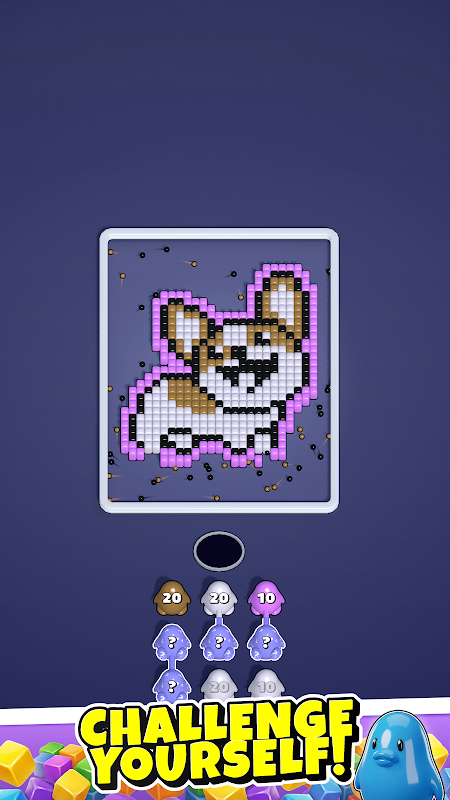 Aber Achtung: Die Anzahl der Bälle auf dem Spielfeld ist begrenzt. Schießt du zu viele Bälle auf Farben, die noch nicht erreichbar sind, füllt sich die Leiste, bevor das Bild wieder leer ist. Spiel vorbei. Du musst also das Spielfeld genau analysieren, den richtigen Schützen im richtigen Moment auswählen und zusehen, wie die Pixelgrafik Stück für Stück zerfällt.