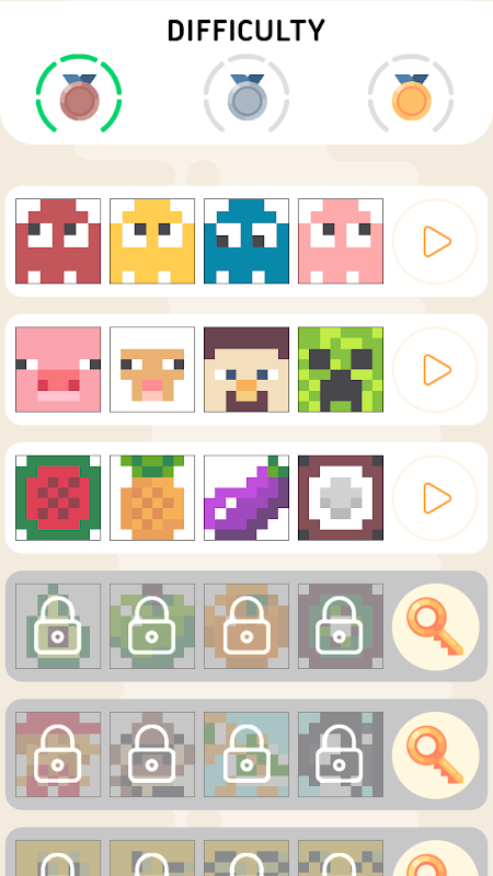 Jedes Puzzle beginnt mit einem durcheinandergewürfelten Pixelbild. Tippe auf einen beliebigen 2x2-Bereich, um ihn auszuwählen, und wisch dann nach links oder rechts, um die 4 Pixel im oder gegen den Uhrzeigersinn zu drehen. Drehe die kleinen Blöcke so lange, bis das Originalbild wiederhergestellt ist!