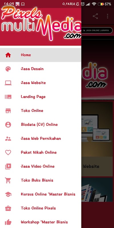 Aplikasi ini memuat informasi Jasa atau Produk yang ditawarkan Oleh PixelsMultimedia.com (Jasa Pembuatan Website, Jasa Pembuatan Toko Online, Jasa Pembuatan Video, Jasa Desain, Jasa Marketing Online, Mentoring Bisnis Online, eCourse, Mitra Bisnis Online, dll), dan juga disediakan info kontak kami jika anda ingin menghubungi kami berkaitan Jasa / Produk yang kami tawarkan.