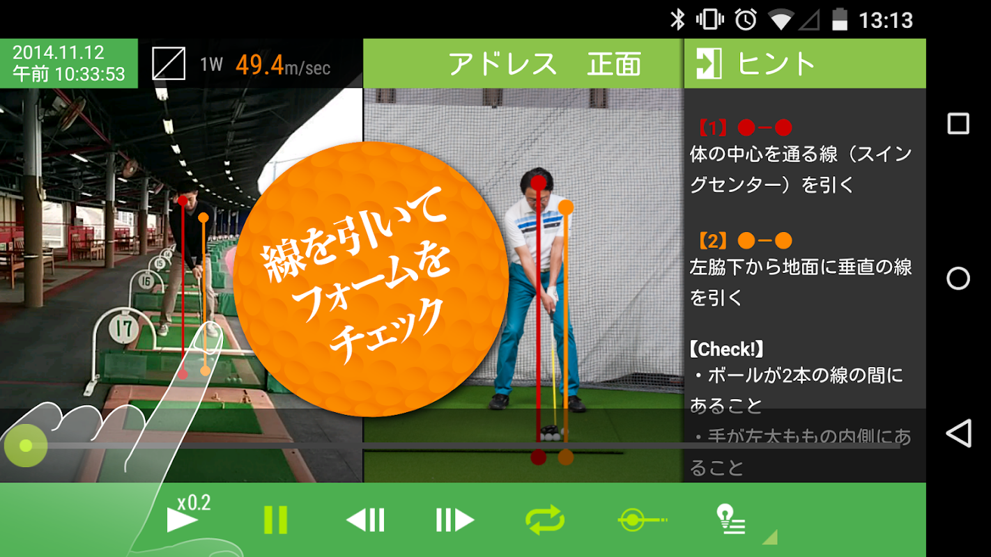 ・アプリに収録されているプロのお手本スイングとも比較できます。