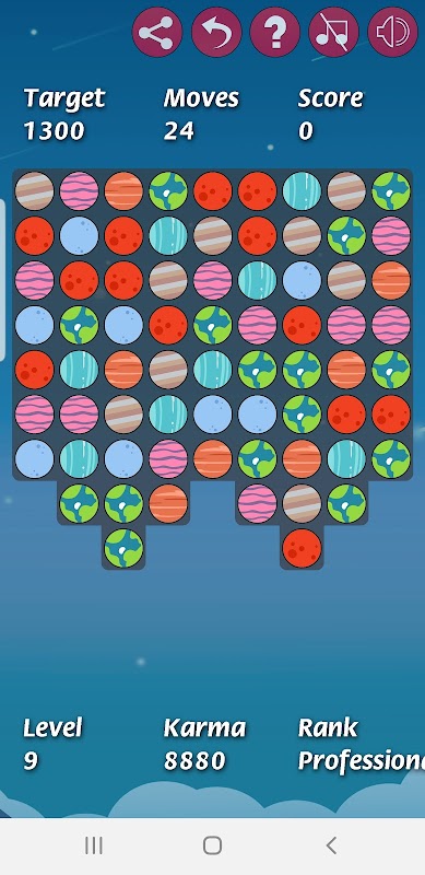 Erlange einen magischen Planeten, indem du fünf Planeten in einer Reihe oder Spalte kombinierst. Wenn du einen magischen Planeten mit einem normalen Planeten tauschst, werden alle Planeten desselben Typs auf dem Spielfeld zerstört, was dir zahlreiche Punkte einbringt. Spezialplaneten, die du erhältst, wenn du vier Planeten in einer Reihe oder Spalte kombinierst, sind weiß umrandet. Wenn du drei Planeten, darunter einen Spezialplaneten, zusammenbringst, werden alle Planeten in der gesamten Reihe oder Spalte entfernt.