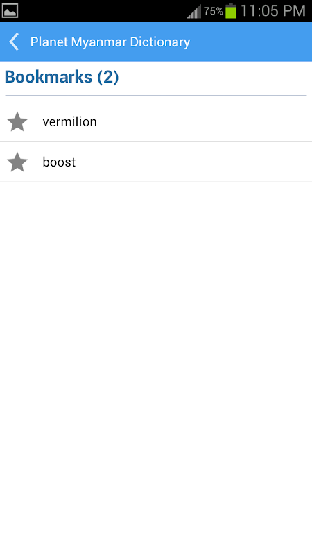 Planet Myanmar Dictionary is dedicated to Planet.com.mm user who would like to use Planet Dictionary through their Android OS based mobile phone without accessing Internet. It's easy to search and save your favorite word in their mobile.