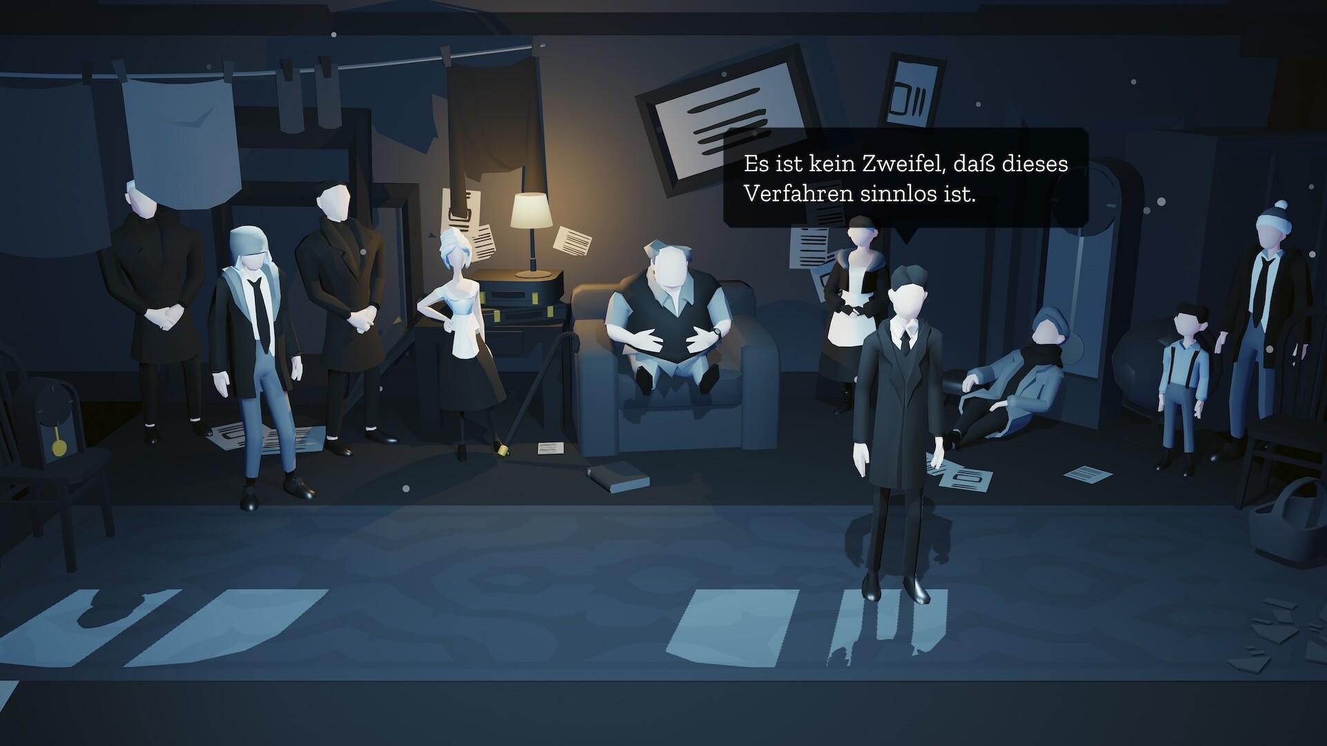 Du stehst vor einem undurchsichtigen Gerichtsverfahren und wirst langsam in ein Geflecht verwirrender Bürokratie hineingezogen. Es liegt an dir, wie du mit der vagen, aber heimtückischen Anklage umgehst – wähle, wen du um Hilfe bittest und wie du mit Richtern, Staatsanwälten und anderen sprichst, während sich das Urteil langsam gegen dich formt. Macht es überhaupt einen Unterschied, ob du unschuldig bist?