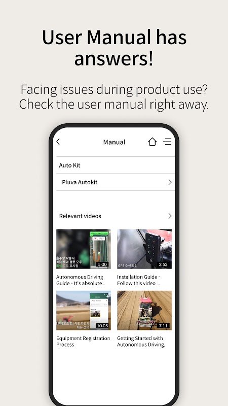 Nutzen Sie mühelos autonome Fahrfunktionen, verwalten Sie landwirtschaftliche Informationen effizient über cloudbasierte Einstellungen, überwachen Sie landwirtschaftliche Maschinen und führen Sie eine lückenlose Aufzeichnung Ihrer landwirtschaftlichen Aktivitäten.