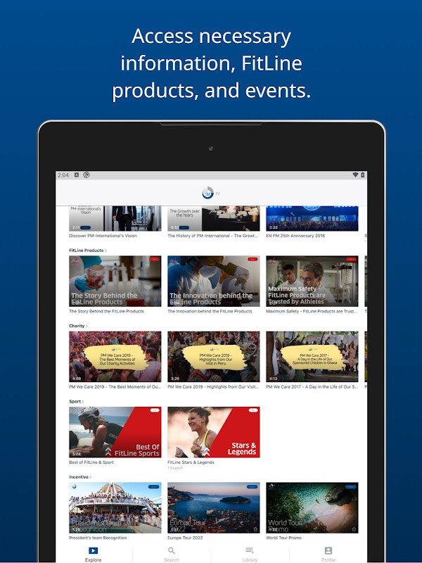 Alles, was Sie für ein erfolgreiches Geschäft brauchen! Unsere brandneue PM TV App ist ein Content Hub, der Sie mit allen notwendigen Informationen und Neuigkeiten rund um PM-International, die FitLine-Produkte und Veranstaltungen versorgt.