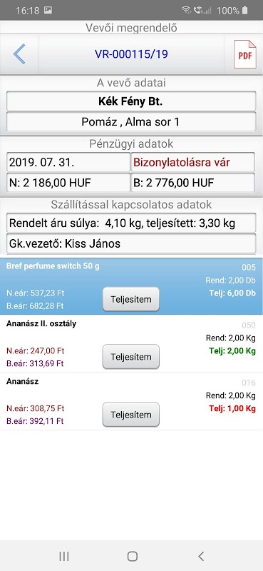 Az applikáció a PmCode NextStep programcsomagban levő vevői rendelések teljesítéséhez nyújt segítséget.