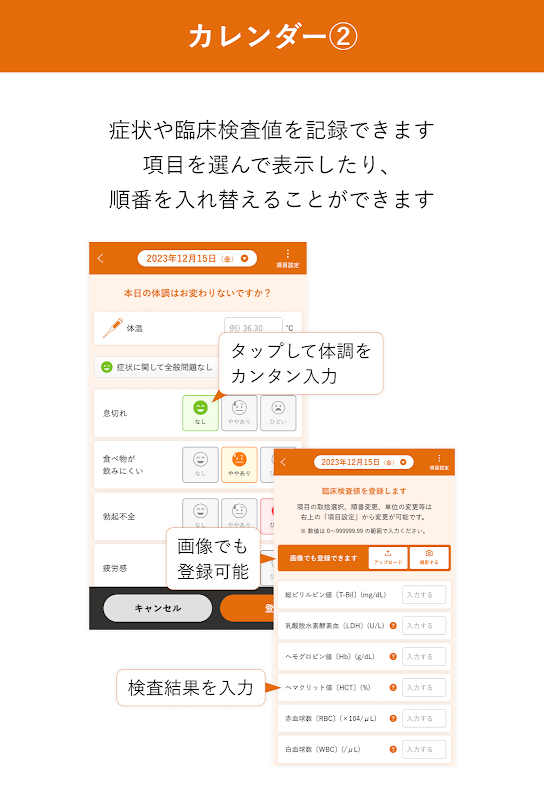 Unterstützung des Selbstmanagements durch Aufzeichnung Ihrer täglichen Symptome und klinischen Laborwerte usw