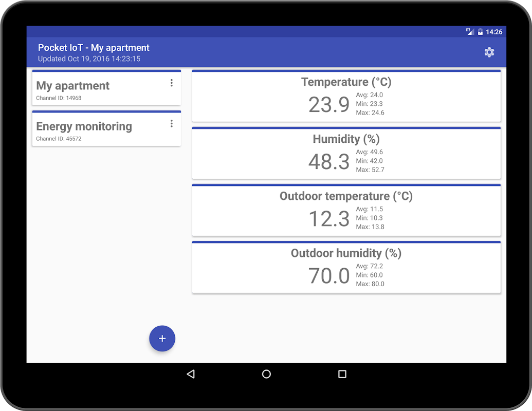 Mit Pocket IoT können Sie Ihren Thingspeak-Kanälen ganz einfach mit Ihrem Android-Gerät folgen.