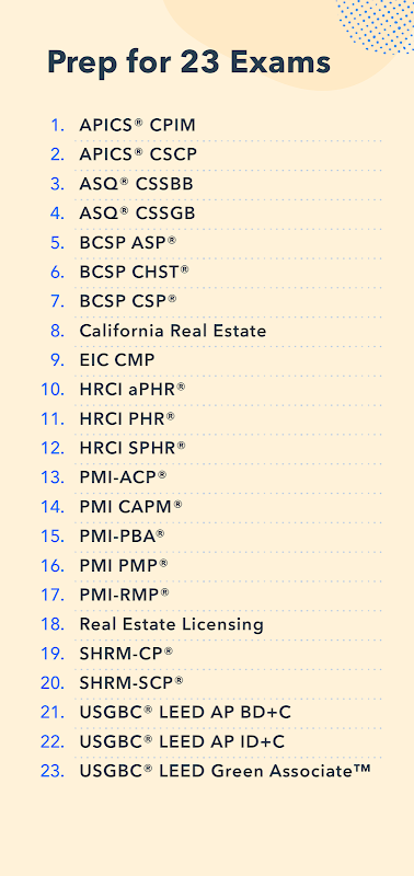 Sichern Sie sich mit Pocket Prep, dem größten Anbieter mobiler Prüfungsvorbereitung für professionelle Zertifizierungen, Zugriff auf Tausende von Übungsfragen und Probeklausuren für PMI PMP, PMI CAPM, SHRM-CP, HRCI PHR und weitere.