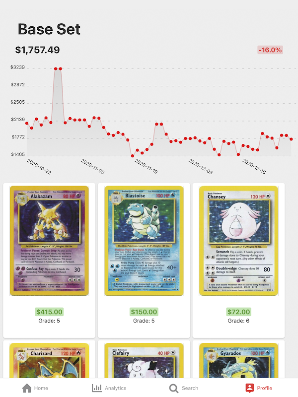 - Erstellen Sie Ihr eigenes Pokefolio und verfolgen Sie den Wert Ihrer Karten