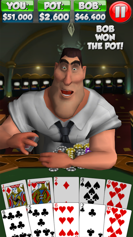Treten Sie in einem 5-Karten-Pokerspiel gegen Bob, ein temperamentvolles Großmaul, an.