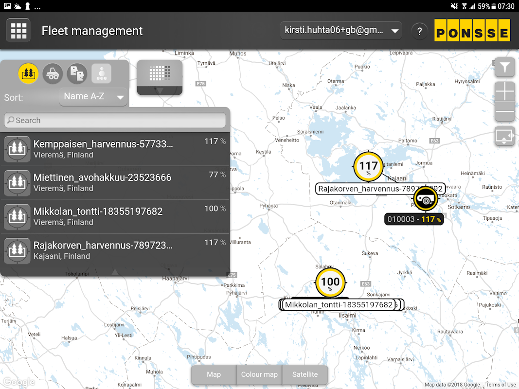 Der Erfolg Ihres Unternehmens wird durch detaillierte Informationen über Ihre Maschinen die Produktivität und Rentabilität garantiert. PONSSE Forstmaschinen sind Ihre Firma mobile Produktionsanlagen. PONSSE-Manager hält Sie auf Angelegenheiten auf dem Laufenden, die die Rentabilität Ihrer Flotte beeinflussen.