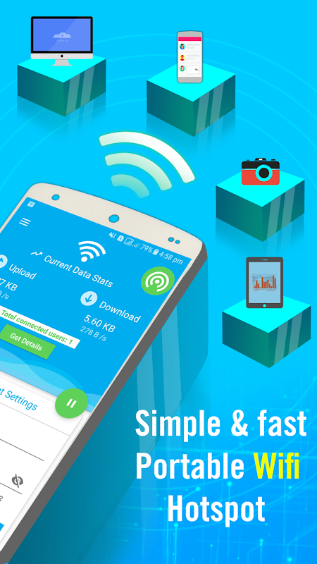 Mit mobilen Wi-Fi Mobile Hotspot-App teilen Sie einfach Ihre mobile Datenverbindung mit jedem Sie Free Wifi Hotspot-Anwendung mit leichtem Datenspeicher ist in der Lage, Wifi zu übertragen, teilen Wifi von Ihrem Telefon in der High-Speed-, sichere und einfache Art und Weise.Ein einfacher Weg zu verwalten Wifi Verbindungen. Diese bewegliche wifi mobile Hotspot Wifi Verbindung App ermöglicht jedem Android Smartphone, nach einem offenen WiFi Netzwerk zu suchen und sich automatisch mit ihm zu verbinden. Speichern Sie Ihre Daten über kostenlose WiFi-Verbindung