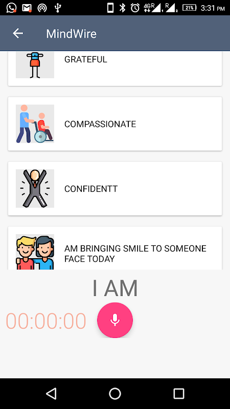 2)It is a known fact that your mind is more sensitive to your voice. For this reason, the app gives you an ability to record affirmations your Voice at any time.
