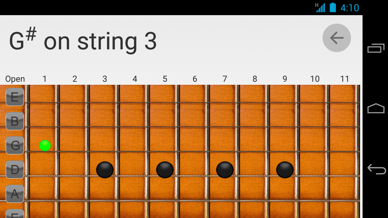 Einfache und einfache Schnittstelle für Notizen auf Gitarre zu üben.