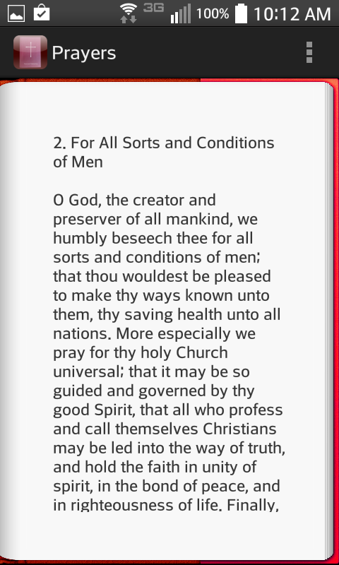 This App is based on the Prayers and Thanksgivings chapter in the 1979 Book of Common Prayer (Episcopal Church) beginning on page 809. The purpose of the App is to provide easy access to more than 120 Prayers and Thankgivings available using a simple to use interface. Also included is the Prayers of the People (Forms I through VI) normally found on page 383 of the 1979 Book of Common Prayer (Episcopal Church). I hope you and your family find this App spiritually enriching for your souls and enjoy it as much as I do with my family.