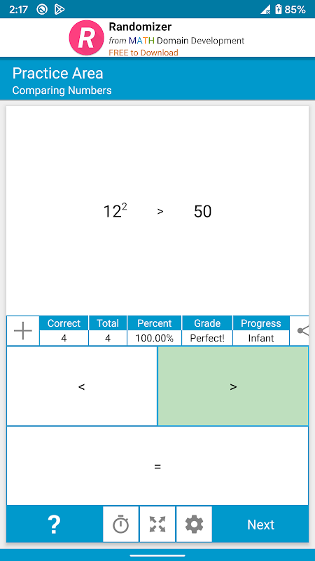 Der Übungsbereich dient dazu, Ihre Genauigkeit und Geschwindigkeit beim Problemlösen zu verbessern. Es stehen Ihnen unbegrenzt viele zufällig generierte Multiple-Choice-Aufgaben zur Verfügung. Nach Beantwortung jeder Frage erhalten Sie eine Schritt-für-Schritt-Lösung. Sie können Ihre schnellsten Durchschnittszeiten oder Ihre längsten Serien richtiger Antworten für viele Themen speichern.