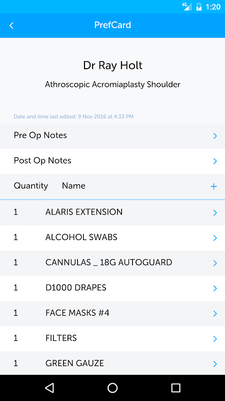 PrefCard APP integriert alle Ihre Chirurgen und Anästhesisten Vorlieben in einem digitalen Raum. Völlig kundenspezifische Bevorzugung Karten aus Krankenhäusern Inventar gebaut. Remotely aktualisierbar von den Fachleuten selbst, um sicherzustellen, genaue und aktuelle Einstellungen. Erreichbar mit allen relevanten Krankenhauspersonal, Notizen präoperative sicherzustellen, intra-operative Werkzeuge und Post op Bestellungen werden besucht alle nahtlos an die einer Informationsquelle zu. Sie können auch die Krankenhausausrüstung Offizier der Notwendigkeit für "one off" oder spezielle Werkzeuge, minimiert das Risiko von kostspieligen Verzögerungen am Tag der Operation informieren. Verbessern Sie Ihre Krankenhäuser Patientenfluss und teure Verzögerungen zu vermeiden, erhalten Sie alle Ihre Krankenhäuser Profis auf der gleichen Seite, erhalten PrefCard.