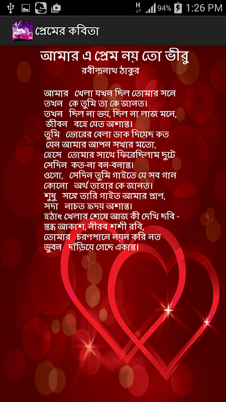 I think there is none who does not fall in love in his/her life. for those people! who are in love! i made an app as love poem/ Premer Kobita, it has a soft background music with sweet background image. Text are as Bangali. so i hope you will love it and share with your friends.