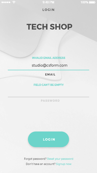 Our easy customizable Login Component includes three connected screens – Login, Sign up and Forgot password. These screens are commonly seen in all apps that require authentication.