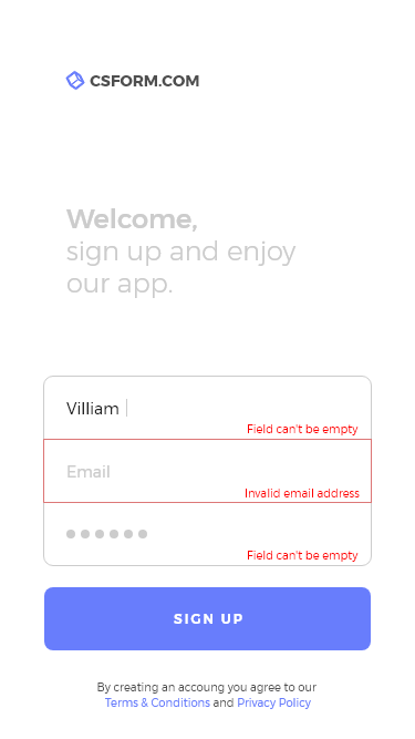 When building an app, it is important to make sure that the data users insert in the forms is in the correct format, in order to process it successfully. If you integrate our component in your app, you won't have to worry about incomplete submits or empty fields.