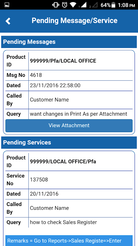 Es gibt Ihnen direkten Zugriff auf Ihre anstehenden Nachrichten / Dienstleistungen mit aktuellen Status zusammen mit Service-Geschichte.
