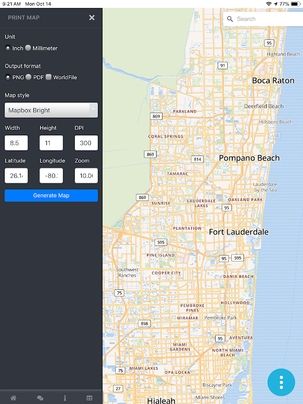 Mobile App zur Offline-Erstellung von hochwertigen georeferenzierten PNG-Karten und PDF-Karten