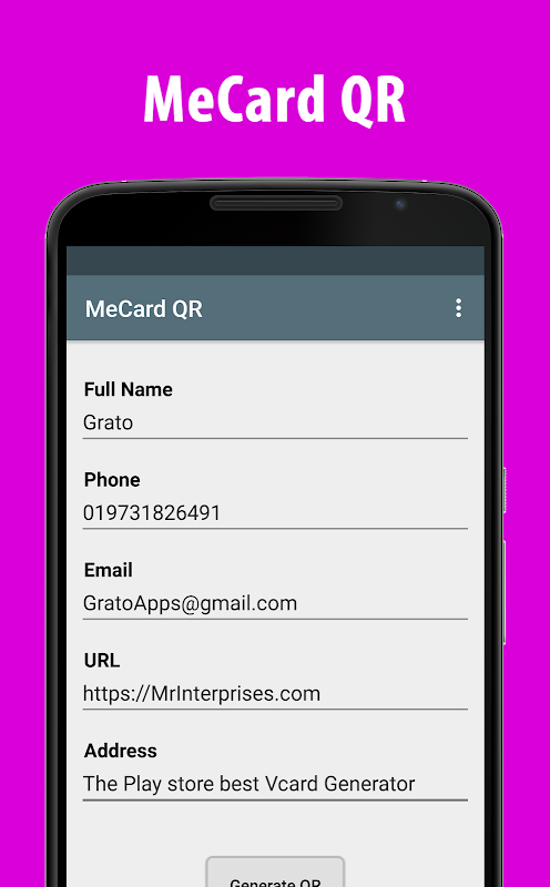 Nützliche App zum Erstellen von QR-Codes für BizCard, MeCard, Vcard.