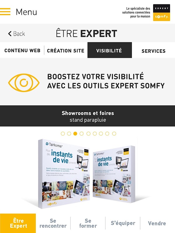 Votre appli Programme Expert Somfy évolue en 2017 ! Retrouvez la totalité de votre Programme Expert et de vos avantages dans ce nouvel outil plus complet, rapide et fluide.