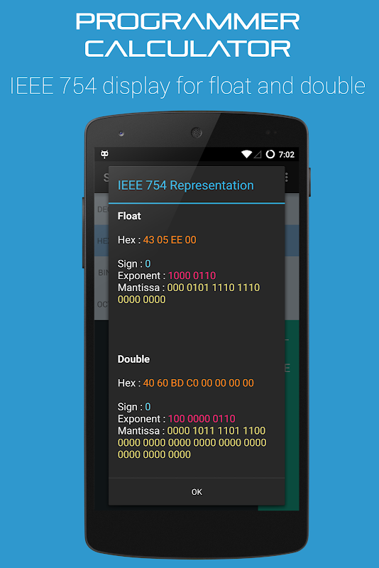 Es kann IEEE 754 Darstellung von Zahlen zeigen.