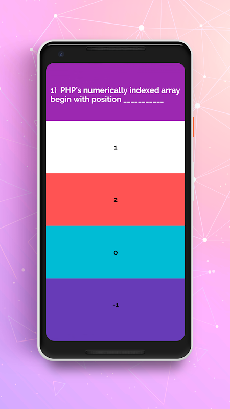 Programmier-Quiz bestehen aus Fragen, die auf vier großen Programmiersprachen basieren (C ++, JAVA, Dart, PHP, Python). Sie können die Frage beantworten, indem Sie den Quiz-Modus auswählen. Die wahren oder falschen Fragen basieren auf zwei Antworten. Bei Multiple-Choice-Fragen gibt es vier Antworten.