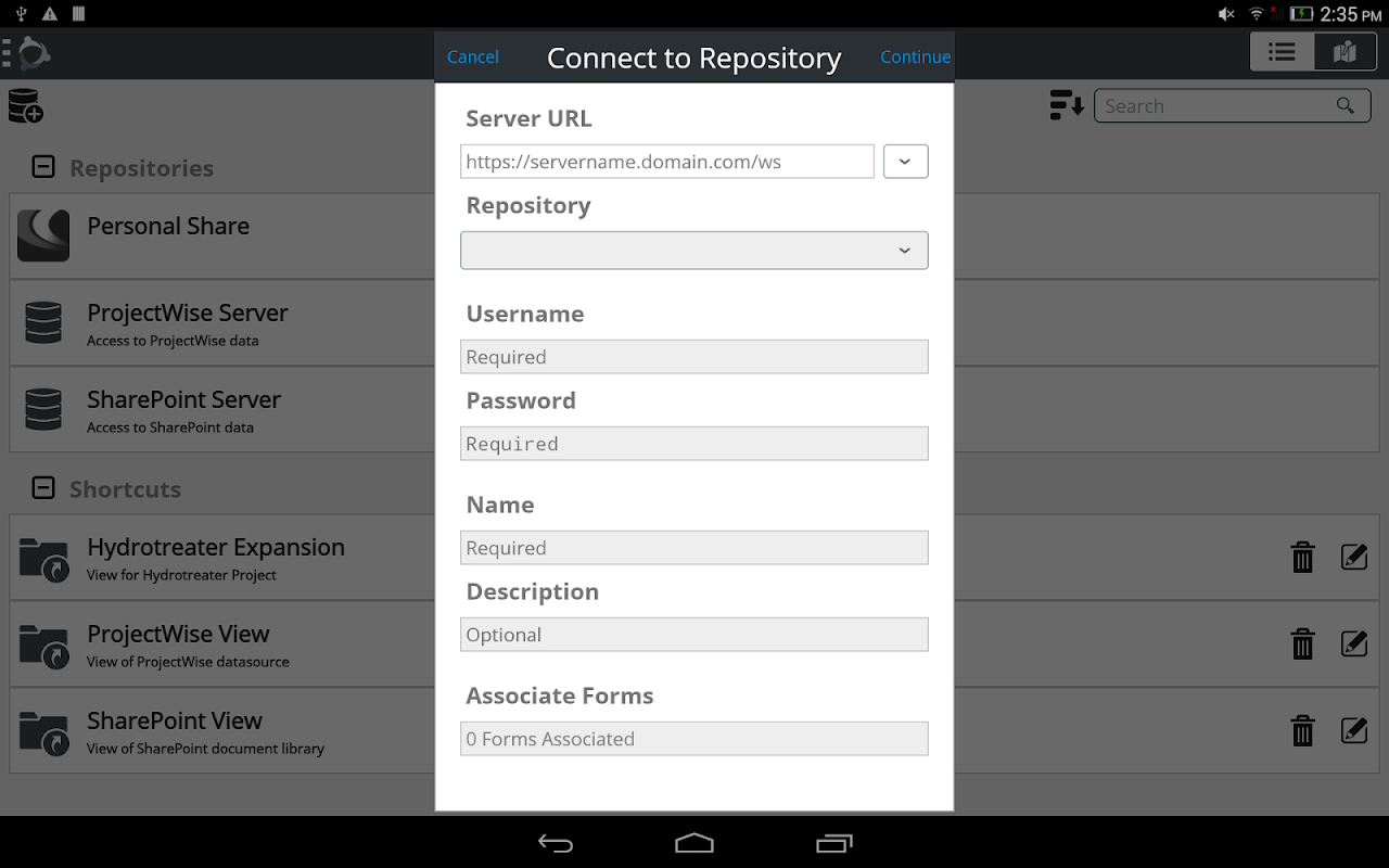 ProjectWise WorkSite provides construction field workers with onsite views into multiple project data. These role-specific, personalized views ensure real-time decisions are made using the most relevant and current information. At the same time, it eliminates the risk of relying on potentially outdated printed materials. WorkSite connects to multiple project data sources, including Bentley’s ProjectWise collaboration system and eB, which controls information throughout the lifecycle of change. This allows users to directly access secure electronic documents for inspection and confident decision-making while in the field.