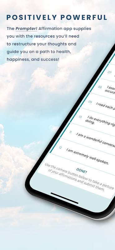 Wir denken oft, dass Erfolg eine positive Einstellung schafft, aber das ist nach hinten: unsere Gedanken unser Handeln diktieren. Wenn Sie ständig denken, dass, zum Beispiel, Sie sind durchschnittlich, Sie proben ein Muster des Denkens, die in Ihrem Verhalten aufrechterhalten werden. Wir haben die Lösung für diese Feedback-Schleife: Die Prompter Bestätigung Plattform. Wir liefern die Ressourcen, die Sie benötigen, um Ihre Gedanken zu strukturieren und begleiten Sie auf dem Weg zu Gesundheit, Glück und Erfolg. Wir bieten Ihnen eine einzigartige Reihe von Bestätigungen alle 21-Tage, die Sie sind von Hand zu schreiben und senden Sie täglich über den App. Wenn Sie positive Gedanken im Präsens mit vorsätzlicher Absicht bekräftigen, Sie neue geistige habits.With genug Probe bauen, werden diese Affirmationen Reflexe werden. Im Folgenden werden Sie keinen Zweifel haben, dass Sie organisiert sind, weil Sie die Idee geprobt haben würden, dass „ich sehr in alles organisiert bin ich.“ Das ist die Macht der Affirmationen.