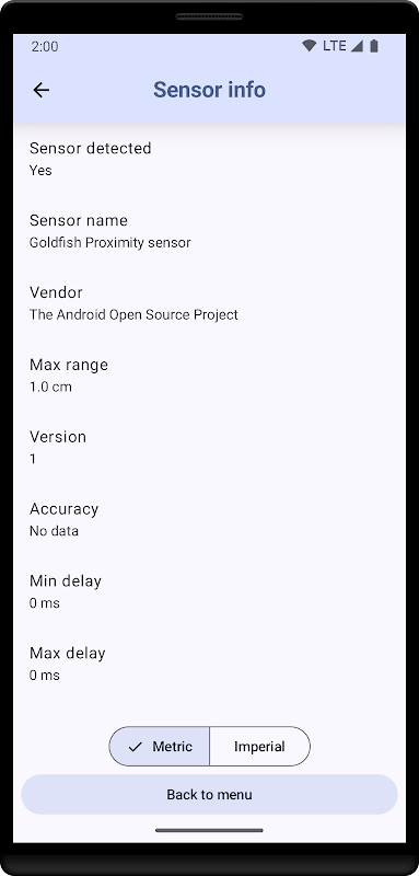 Es gibt auch eine Sensorinfoseite, auf der alle verfügbaren Informationen zu Ihrem Näherungssensor angezeigt werden.