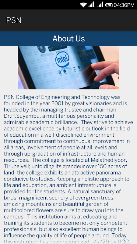 This app is about PSN College of Engineering and its specification.