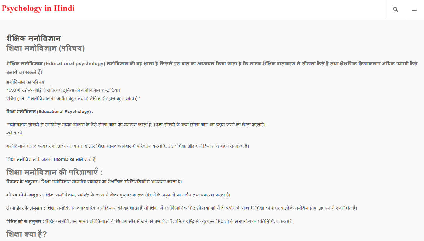 :: शैक्षिक \ शिक्षा मनोविज्ञान (Educational psychology)