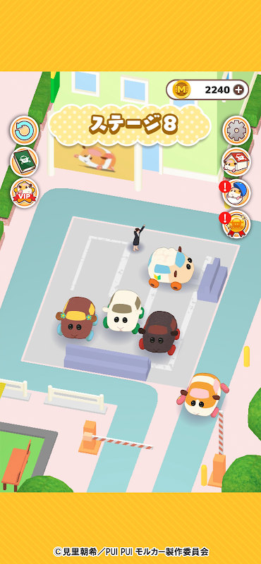 Es gibt verschiedene Parkplätze wie "Urban City", "Judgement", "Evil City" und "Otaku City". Bewegen wir die Molker, die sich nur gut hin und her bewegen können und entkommen!