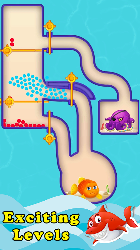 Jedes Level bietet einzigartige Fisch-Puzzle-Herausforderungen. Das Angelrohr ist mit Hindernissen und anderen Lebewesen wie Tintenfischen oder Krabben gefüllt. Stellen Sie sicher, dass der Schlauch mit dem Fisch verbunden ist, um den Füllstand zu löschen. Dieses „Rette den Fisch“-Spiel ist das coolste Denkspiel. Die Befriedigung, beim Lösen jedes Rettungsrätsels Stecknadeln zu ziehen, macht das Gameplay noch großartiger.