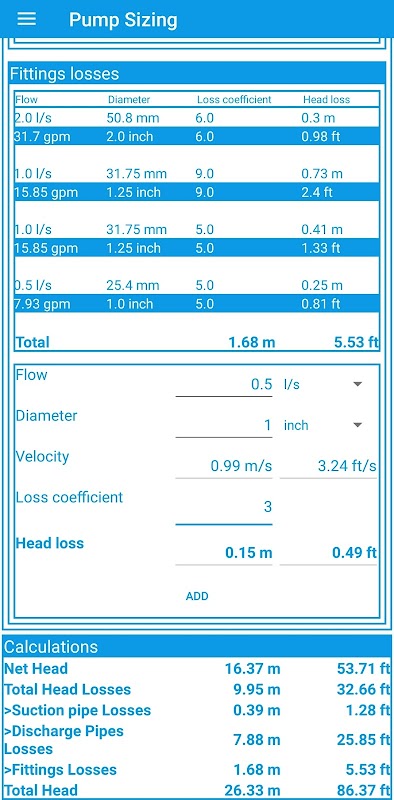 Berechnet die Gesamtförderhöhe von Pumpensystemen & hilft der Auswahl der Pumpe