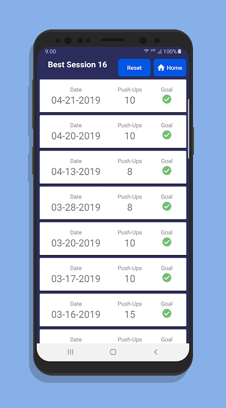 & Bull; Verwenden Sie die organisierte Tabelle den Überblick über Ihre tägliche Push-up-Zählung zu halten und auf ein Ziel hin zu arbeiten.