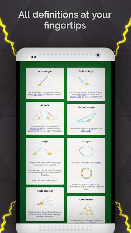 Wenn Sie den Geometriekurs schon länger absolviert haben, ist das Spiel hilfreich, um Ihr Wissen aufzufrischen und zu überprüfen, da es die meisten Ideen und Begriffe der elementaren Geometrie abdeckt.