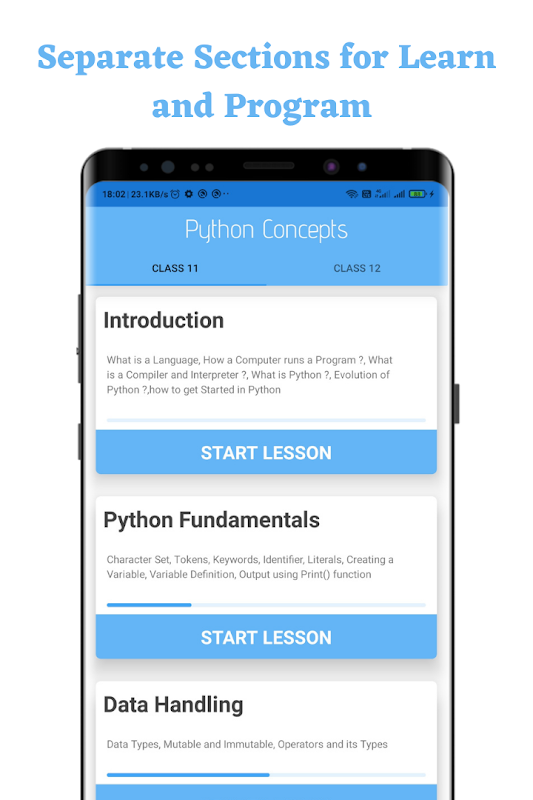 Python für CBSE ist eine App für Schüler der Klassen 11 und 12, die das Programmieren effizient lernen möchten. Python als Programmiersprache ist aufgrund seiner einfachen Syntax und der guten integrierten Funktionen eine gute Wahl. Wir haben mehr als 200 Programme mit einfachen Erklärungen eingebettet, sodass die Schüler keine Schwierigkeiten haben, den Ablauf des Programms zu finden