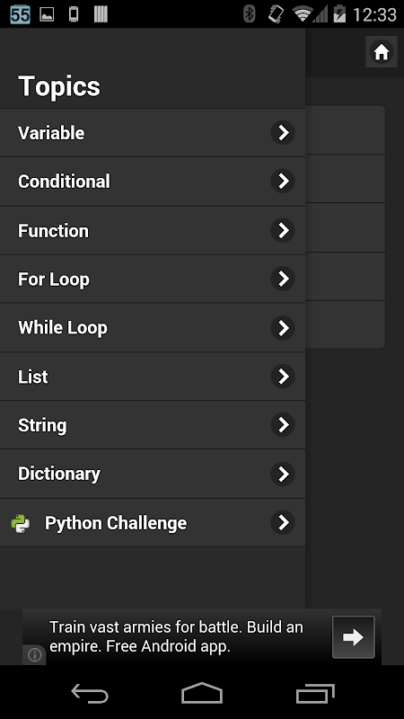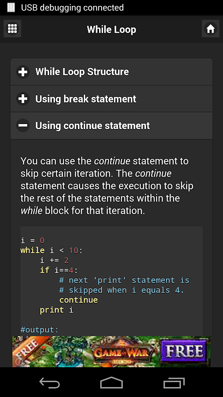 This app is a Quick Reference Guide for Python Programming Language. The guide will be particularly useful for newbies who are trying to get themselves familiarized with python rules and syntaxes.