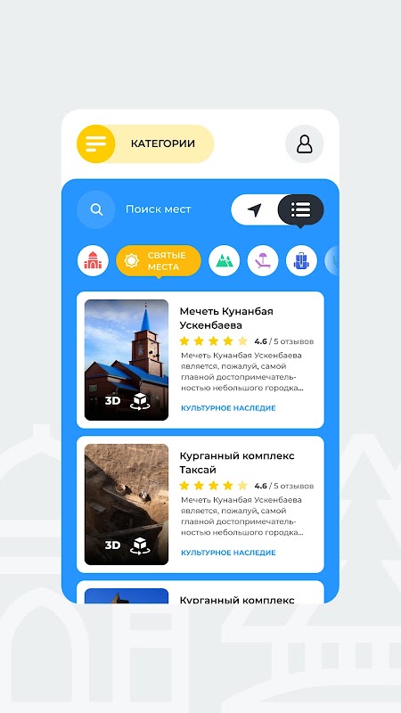 Die Anwendung wird zu mehr als 100 Modelle im 3D-Format beliebte Touristenziele in Kasachstan. Jeder Benutzer wird in der Lage sein, mit den Sehenswürdigkeiten kennen zu lernen und alle notwendigen Informationen in einer interessanten Vorlage zu erhalten.