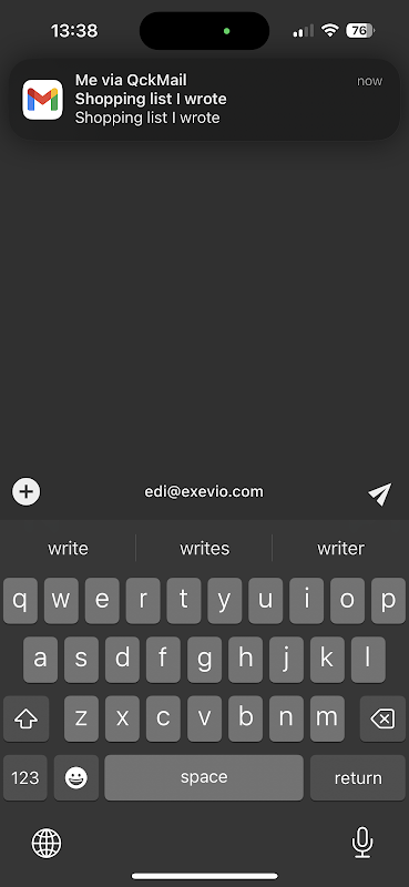 Legen Sie Ihre E-Mail-Adresse nur einmal fest und schon können Sie ganz schnell Notizen an sich selbst senden.